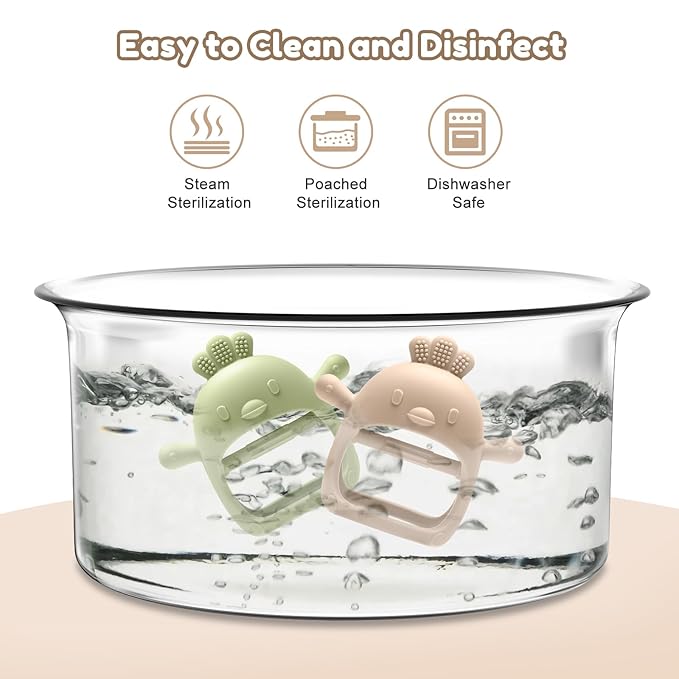 - Baby Toy Easy to Clean: Teething toys for babies 0-6 6-12 months should be completely cleaned before use to ensure the baby's safety. You can clean and disinfect this teething toy with steam, dishwasher or boiled water