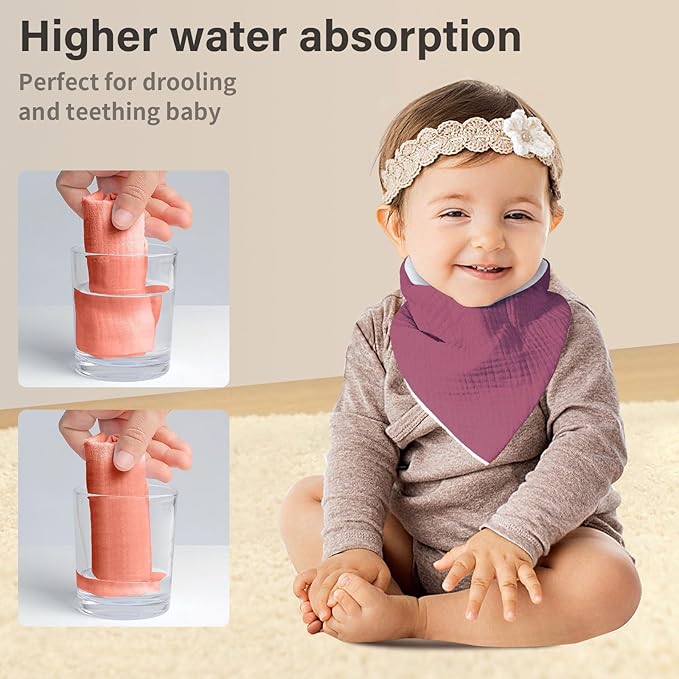 Muslin Baby Bibs,Soft Triangular Baby Bandana Drool Bibs for Baby Boy Girl,Solid Colors Bib for Drooling Teething
