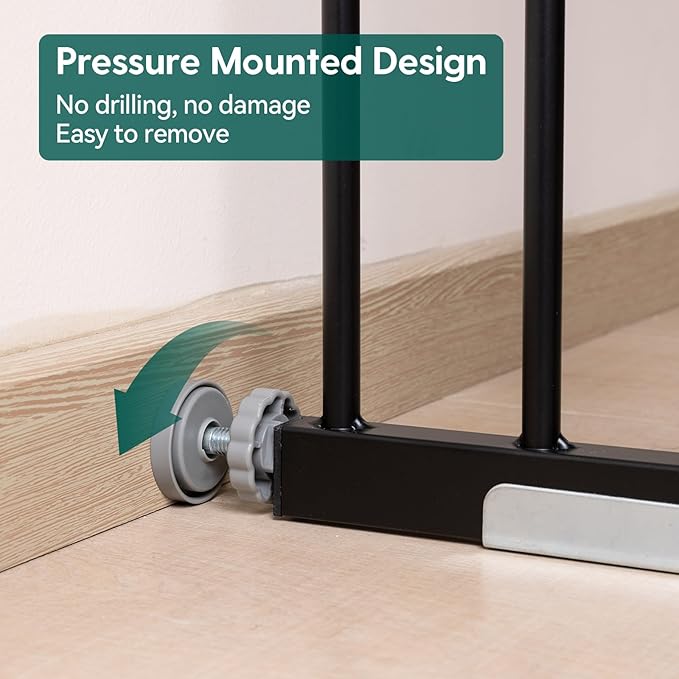 Babelio Baby Gate, 29-43" Auto-Close Easy Install Pet Gate, PressGuard P7 Extra Wide Walk Thru Child Safety Gate, 30" Tall Pressure-Mounted Metal Dog Gate for Doorways & Stairs, Black