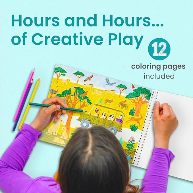 - What's included: Our Safari Sticker Book contains 500+ stickers to place on 12 unique scenes, and 12 coloring book pages all hand-drawn by our artists! Perfect for kids 3-5, the safari animal sticker book includes scenes with different safari animals including giraffes, monkeys, tigers, and more on all sorts of exciting adventures that will ignite the imagination of boys and girls!