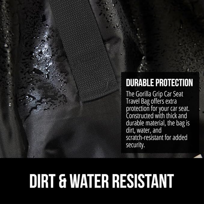 - DURABLE PROTECTION FOR YOUR CAR SEAT: a must for traveling, the Gorilla Grip Car Seat Travel Bag is designed to help protect your car seat while you travel; bag is water, tear and dirt resistant; features drawstring closure that tightly closes around the car seat, helping to protect from dirt, grime and moisture; bag is made of lightweight, yet durable material that can be machine washed