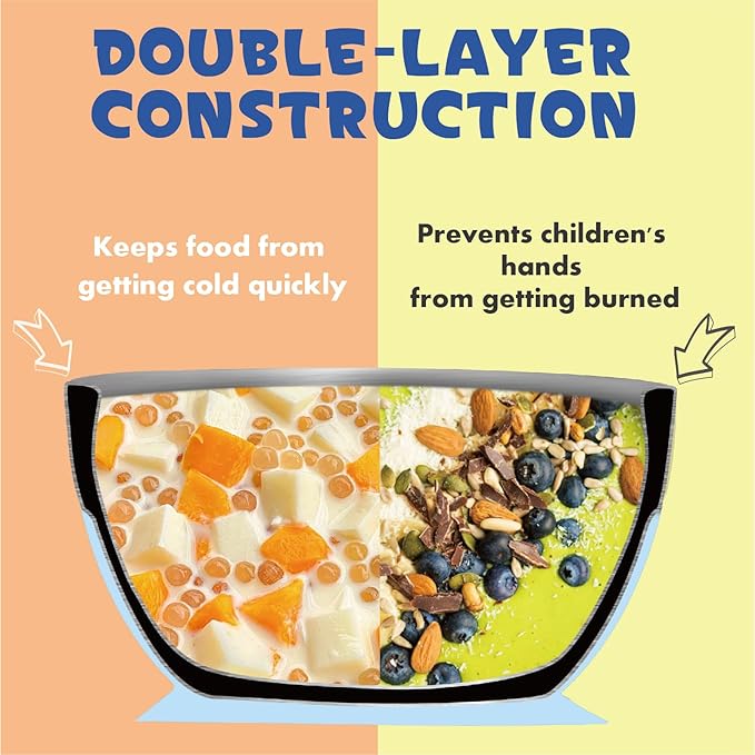 - Built to Last: Crafted from durable 18/8 stainless steel, MR. CHOU insulated baby bowl features a double-layer stainless steel construction that prevents heat transfer and helps maintain the ideal temperature for your baby's food. You can rest assured that your little one's delicate hands won't get burned when grasping the sides.