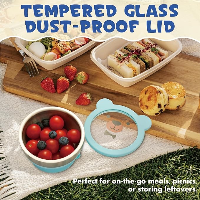 - Versatile and Convenient: Our Infant Suction Bowl comes equipped with a protective lid, transforming it into a practical solution for on-the-go meals, picnics, and storing leftovers. The set also includes a matching fork and spoon, providing you with all the essential mealtime tools in one compact package.