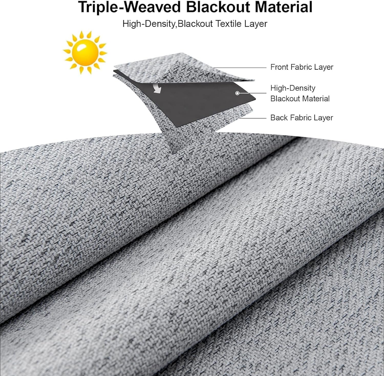 - 【Triple-Weaved Blackout Material】Joydeco blackout curtain consists of three layers, a front fabric layer, a high-density blackout material, and a back fabric layer.We dedicated to solving the problem of strong light in our room, our curtains block out entirely 100% light and UV rays. Whether it's your living room or bedroom, Joydeco curtains can darken your room well with its high-end manufacturing process. Let you enjoy an uninterrupted resting environment.