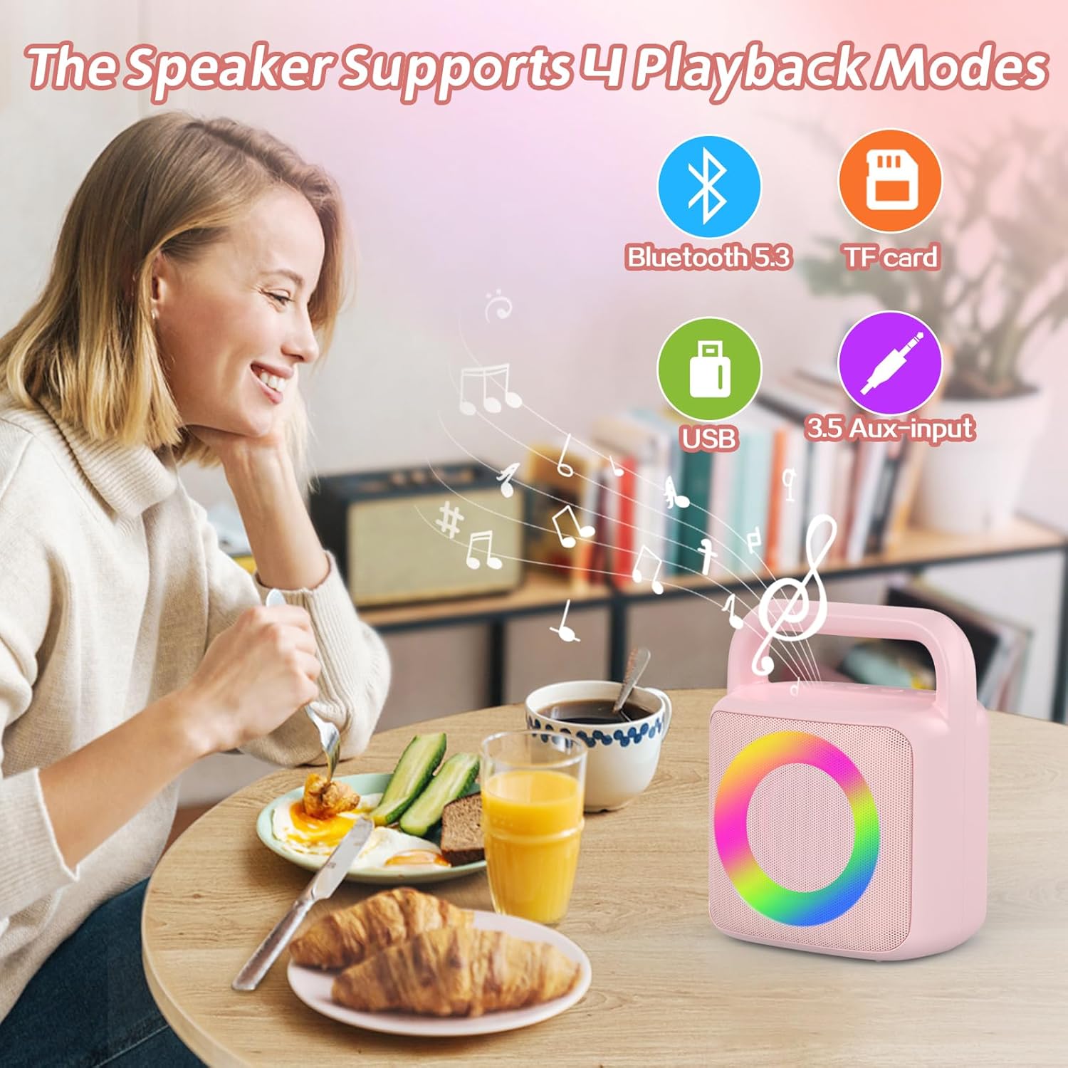 Karoke Machine with 2 Wireless Mics,Portable Karaoke Microphone Toys with Colorful Lights and Magic Voices for Camping Party, Birthday Gift for Boys Girls Teenages Adults