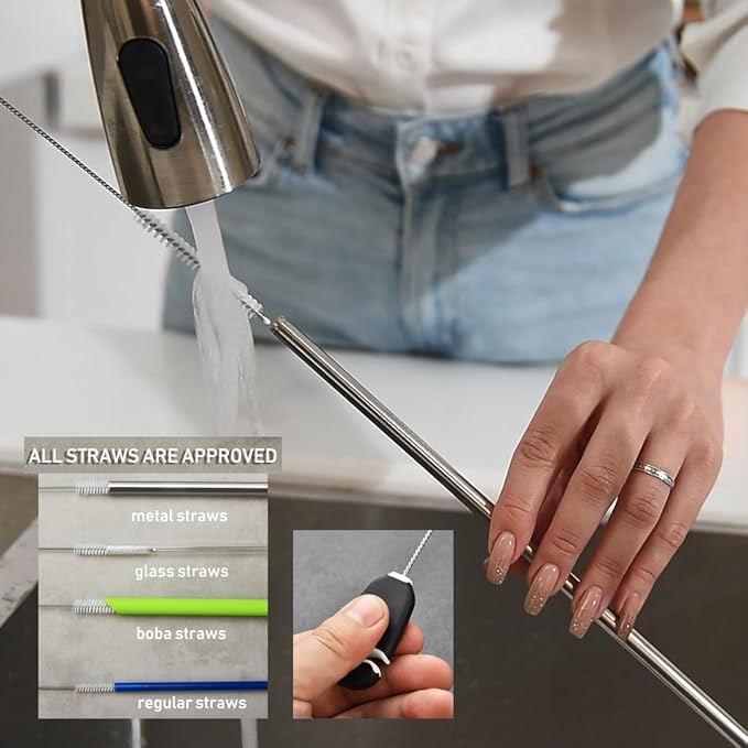 - WIDE & SKINNY STRAW BRUSH - 12 inch long, 12 mm diameter straw brush and 9 inch long, 7 mm diameter straw brush can help you clean more than 20 inch long straws, fat boba straws, regular straws and skinny straws.