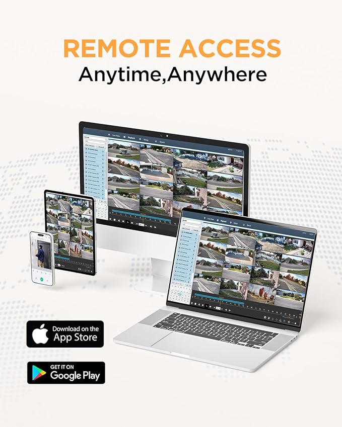 - Remote App Monitoring: GUARD VIEWER mobile App allows you to remote access the NVR system anytime, anywhere. Professional and user-friendly functions, such as live viewing, playback,push notifications.