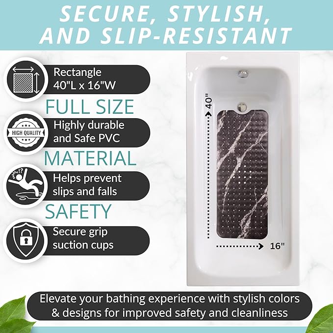 - EXTRA LARGE SIZE measuring 40 inches in length and 16 inches in width for full tub coverage, preventing slips and falls during bathing and showering, and ensures a worry-free showering experience for individuals of all ages, including the young and elderly