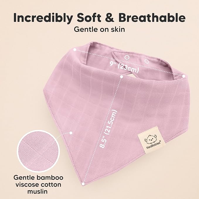 - Ultra-Soft & Breathable - The Lumi Muslin Bandana Bibs are cool to the touch, gentle on all skin types, and highly breathable. These baby drool bibs prevent heat rash and discomfort, making them ideal for teething and drooling infants and toddlers.