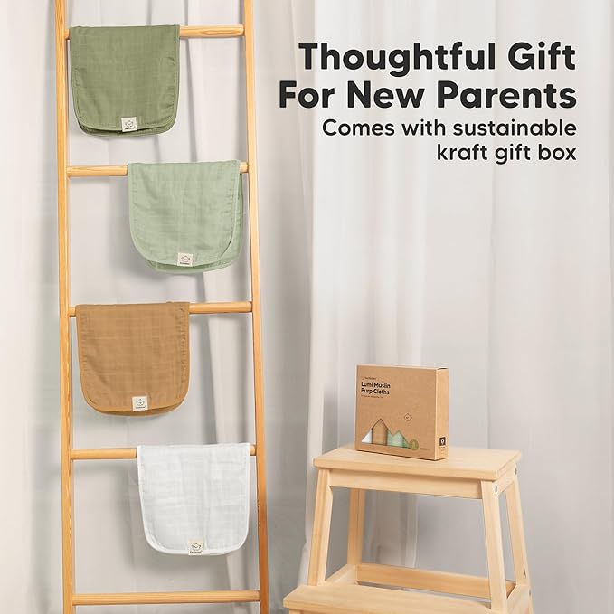 - Beautiful Neutral Palettes - The Lumi Muslin Burp Cloths are designed with gender neutral palettes for baby boys and girls. It is the perfect baby shower gift and baby registry gift for new parents. Comes with sustainable kraft gift box.