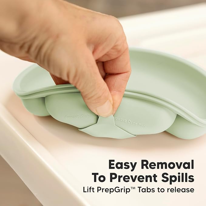 - Best Suction Plates - Now even better with lid! Doubling as baby food storage tray, our silicone plates with lids offer strong PrepGrip Suctions that adhere firmly to flat surfaces on high chairs/tables, prevent tipping and tossing for mess-free eating.