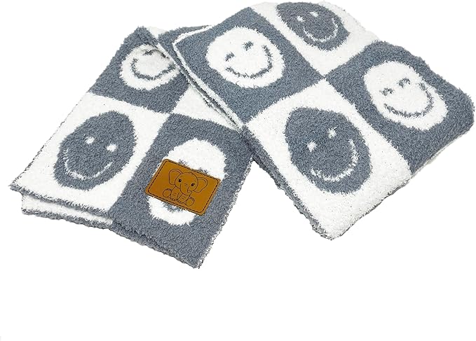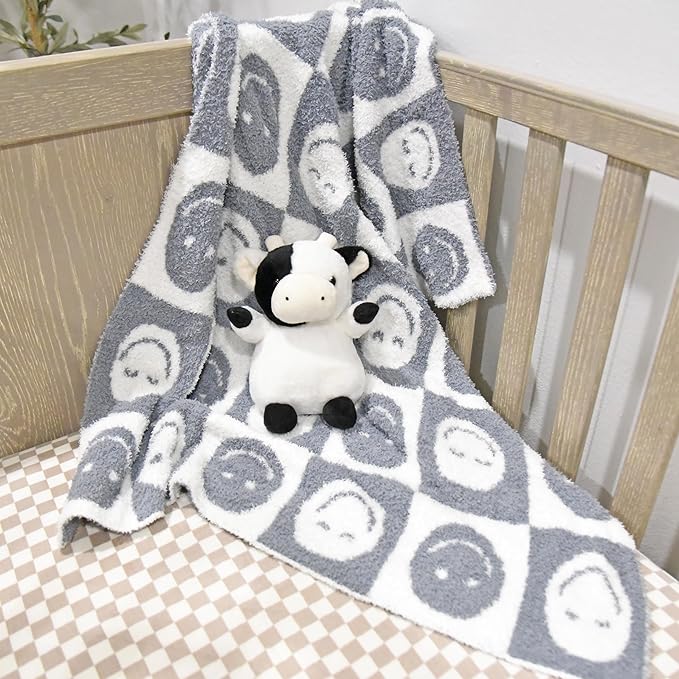 Checkered Smiley Face Baby Blanket 28"x40" - DreamSoft Knit Throw for Crib, Stroller or Car Seat - Receiving Blanket/Newborn Nursery Gift Essential for Toddler, Infant, Kids, Boys & Girls (Gray/White)