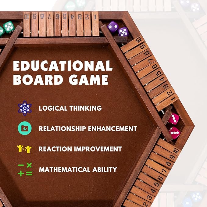 - MULTI-PLAYER DICE GAMES FOR 2-6 PLAYERS - Perfect shut the box board game for family game night, party games, and social gatherings. Educational math games that bring kids and adults together for interactive learning fun