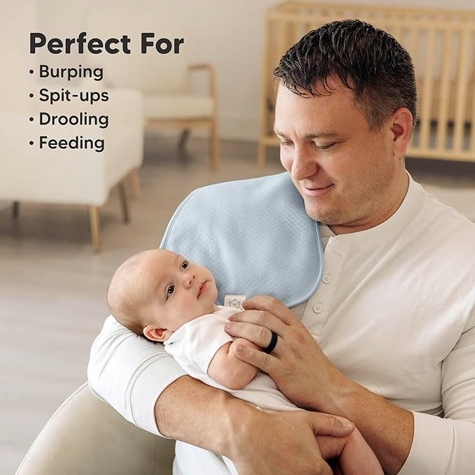 - Ergonomic Comfort - Snuggle up with these versatile organic burping cloths for babies, featuring a smart figure-8 design that stays snug on your shoulders. Lightweight and broad-coverage, they effortlessly guard your clothes against sneaky spit-ups.
