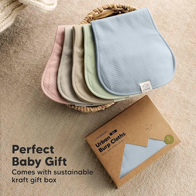 - Thoughtful Gift - Each pack of 5 burp cloths comes beautifully packaged in a kraft gift box. Pair the Urban Quin Burp Cloths with matching Quin Bibs—perfect for any baby registry. Both are machine washable and dryer-friendly, ideal for busy parents.