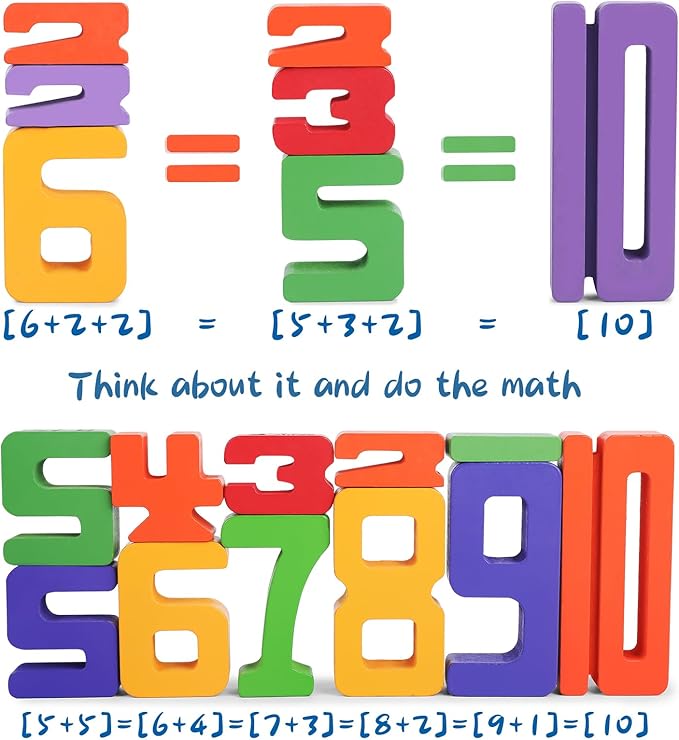 - [SAFETY & ENVIRONMENTAL PROTECTION] : Made of high-quality wood and environmentally friendly water-based paint, the wooden numbers building blocks are brightly colored, large in size, easy to grab, and suitable for children's little hands. The surface of the wooden blocks is smooth and flat without sharp edges and corners, making it durable and not easily deformed