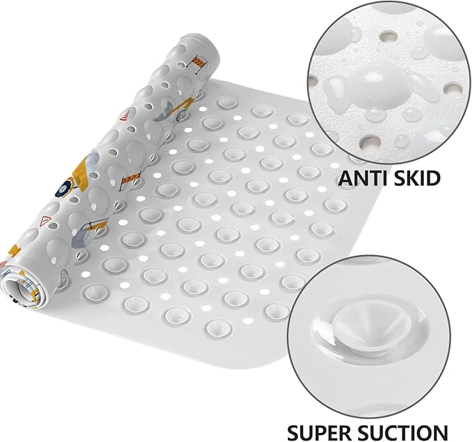 - [Kids Bathtub Mat]: The kids bathtub mat is 40 x 16 inches, which covers the full bathtub for more safety. Multiple uses, this kids bathtub mat can be used as a kids shower mat