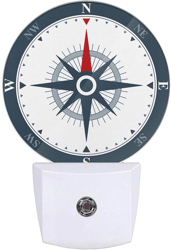 EKOBLA Compass Nautical Plug-in Nightlights Compass Rose Night Lights Plug into Wall Dusk to Dawn Sensor LED Nightlight for Bedroom Bathroom Hallway Living Room Kitchen