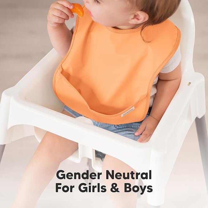 - Covers Upper Chest and Shoulders - Your baby can now enjoy self-feeding without soiling their clothes with the mess-proof bibs. This toddler bib for baby boys and girls comes with a wide food catcher pocket holds fallen food crumbs and purée spills.