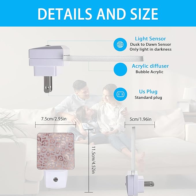 Night Lights Plug into Wall Rose Gold Leopard Night Lights Dusk to Dawn Sensor Led Lamp for Women Men,Led Lights for Stairway/Hallway/Bedroom,0.5W