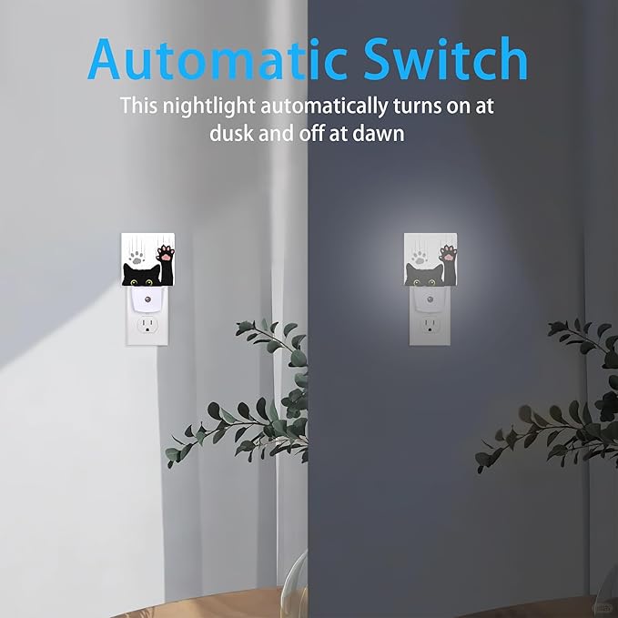 Black Cat Night Light,Cute Funny Cat Night Lights Plug into Wall for Boys Girls, Led Lamp for Stairway/Hallway/Bedroom 0.5W Nightlight Sleep Friendly