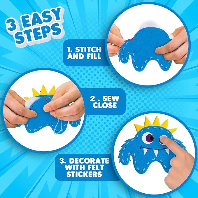 - GREAT GIFT IDEA: Birthday, holiday, or anything in between, this monster sewing crafts set crowns the occasion in style. It’s also a memorable way to keep kids away from screens and improve their fine motor skills. For ages 3+