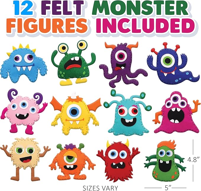 - FUN MONSTER THEME: Every stitch will be monstrously entertaining! We’ve included 12 different monster characters that pop with a vibrant serving of color. Once completed, the characters can be used as DIY decor kids will be incredibly proud of.