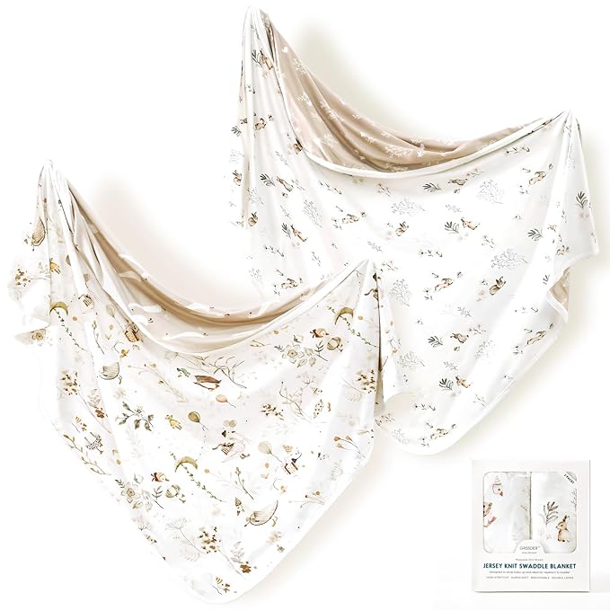 GRSSDER Baby Blankets Super Soft Stretchy Jersey Swaddle Blanket 2 Pack for Baby Boys, Double Layer Reversible Receiving Blankets 34 x 44, Extra Large for Swaddling, Cute Duck & Rabbit