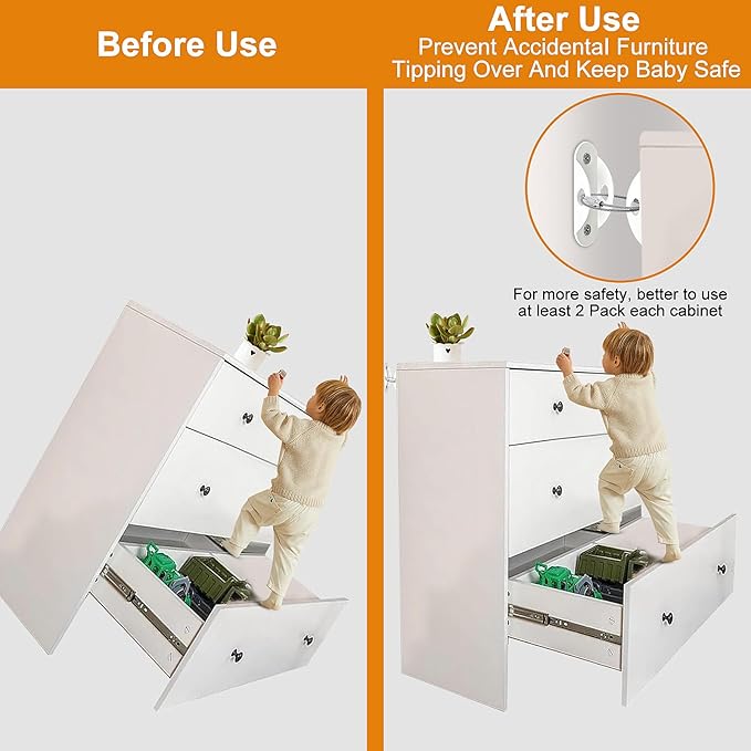 - 【BABY SAFETY】:We know how curious children can be. When toddlers climb on furniture, there is a risk of tipping accidents. The good news is that with the Furniture Anchors, you can help keep your furniture secure and your child safe. Even under pressures of up to 420 pounds, this furniture anchors for baby proofing keeps your furniture upright and secure. So, give yourself peace of mind and invest in this essential baby proofing tool. Protect your precious child with the Furniture Anchors today!