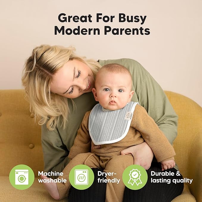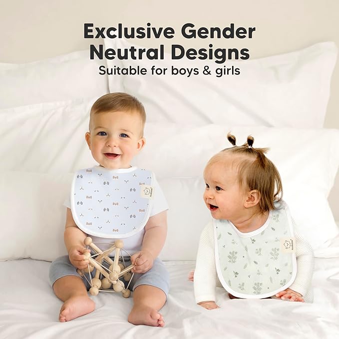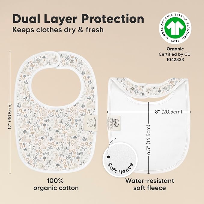 - Super Absorbent - Our organic baby boy and girl bibs are made with 100% organic cotton (GOTS-certified) and backed with water resistant fleece for added absorption. This dual layer design helps to keep your baby clean and fresh all day long. Suitable for newborns, infants, toddlers, heavy droolers and teething babies.