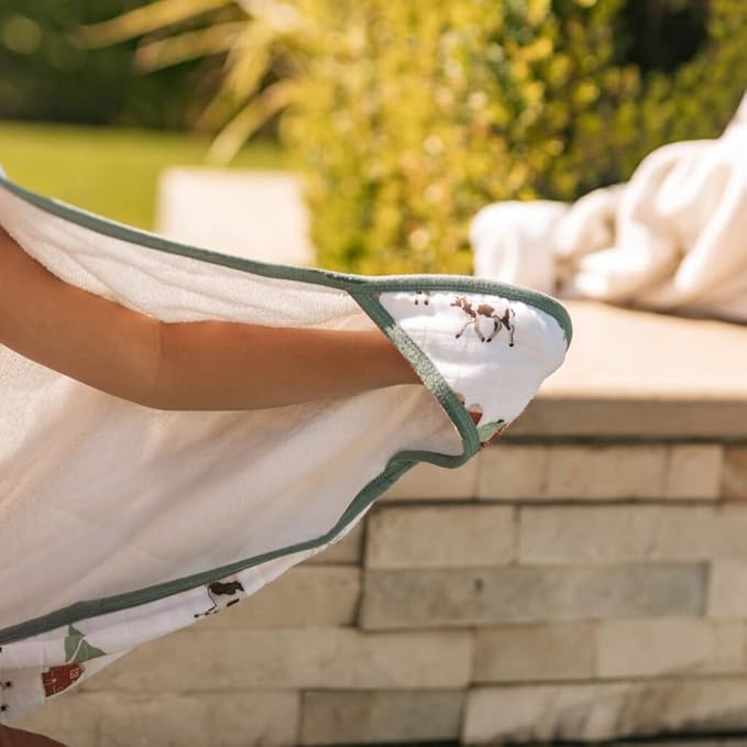 Little Unicorn Premium Hooded Bath Towel| Absorbent Cotton & Terry Blend | Larger Size, 1-6 Years (Farmyard)