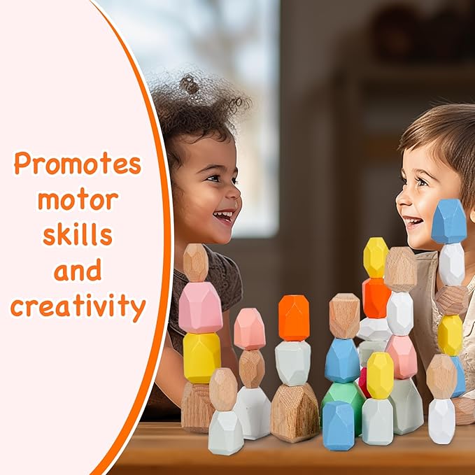 - 【Crafted with Care for Safety】 Prioritizing your child's safety, our stacking pebbles are made from premium wood, finished to perfection to ensure a smooth, splinter-free surface with fully rounded edges. The pieces are sizable to prevent any choking hazard, and we use child-safe, non-toxic paints, guaranteeing a worry-free playtime.