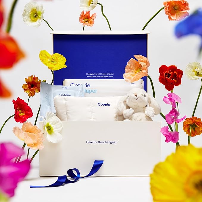 Coterie The Newborn Gift Set, Size Newborn Diapers (31 Count) & Size 1 (33 Count), 1 Travel Size Pack Baby Wipes (18 Count), Plant Based Materials, Hypoallergenic for Sensitive Skin, Baby Essentials