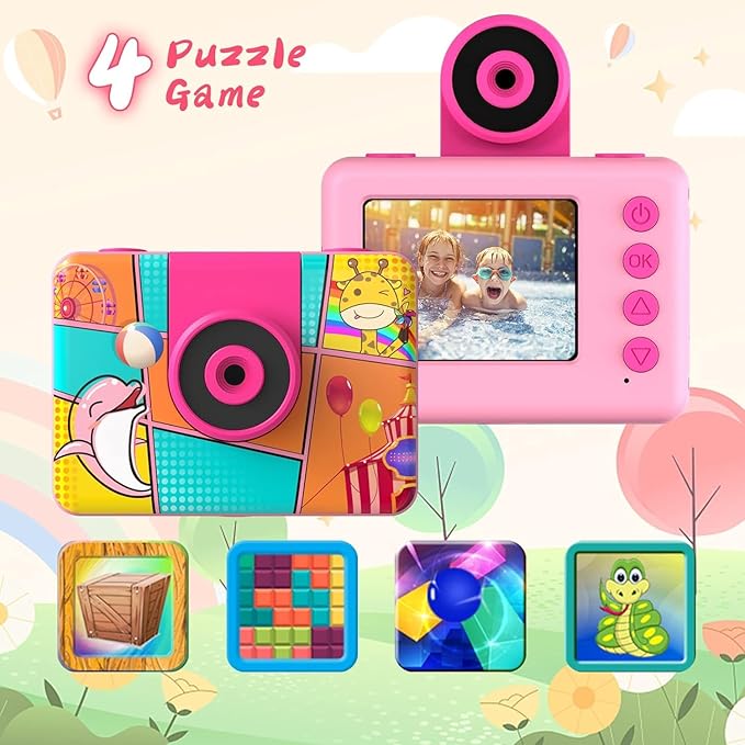 Kids Camera, Waterproof Kids Digital Camera, Children Selfie Camera with 180°Flip Len, 20MP 1080P Sports Action Toy Underwater Camera for Pool Helmet, Birthday Gifts for Boys Girls Age 3-12