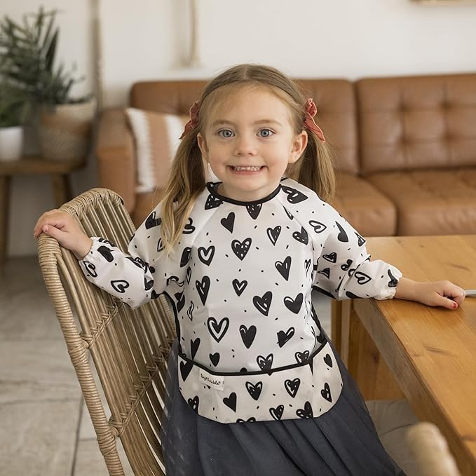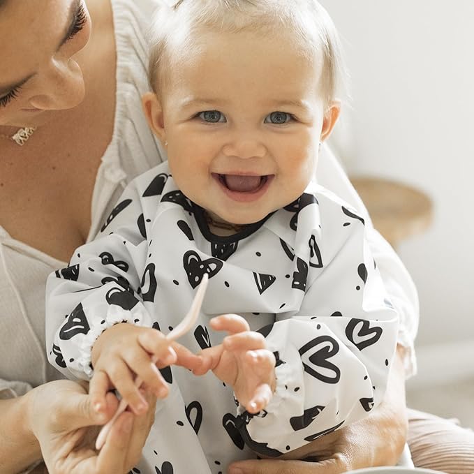 Tiny Twinkle Long Sleeve Bib for Babies & Toddlers – Waterproof Smock Bib for Eating – Machine Washable & Mess-Proof, Baby Feeding Essential & Shower Must-Have(Hearts, 6–24M)