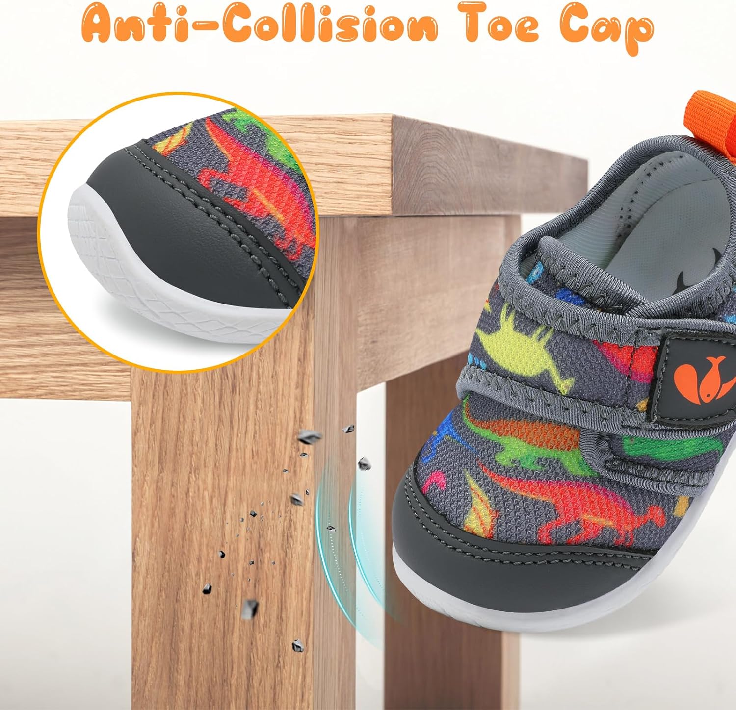 - Walking Confidently: Round toe boxes allow natural splaying of toes for balanced landing and maximum comfort, your baby will walk very confident with them.