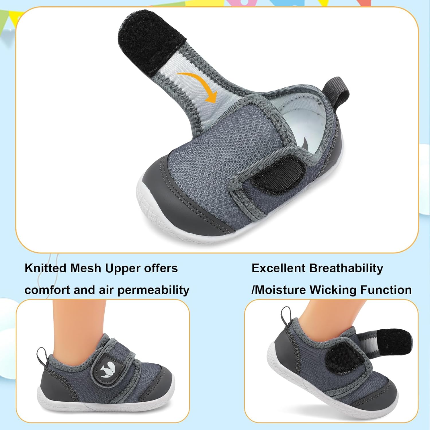 - Upper: Premium quality cotton upper, has excellent breathability, moisture wicking function, and keep baby's feet dry and odorless. Super Soft, Breathable and Comfortable fit all the year.