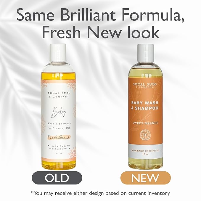 SoCal Suds & Company Baby Shampoo & Body Wash, 2-in-1 Organic Gel - Gentle Castile Soap with Vitamin-Infused Oils & Botanicals - Natural Care for Sensitive Skin Hypoallergenic - 12oz Sweet Orange