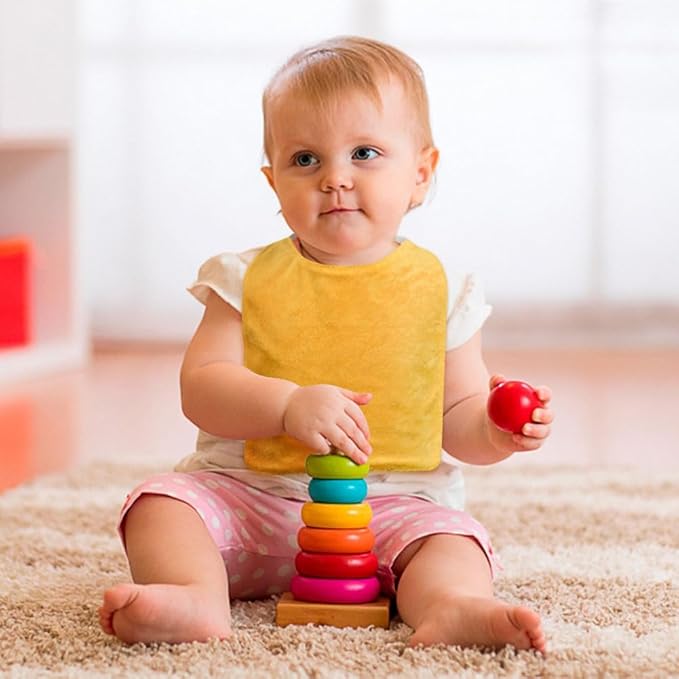 - Soft and Absorbent: The bibs are designed with solid terry cloth, the cotton polyester blend is soft and gentle, with maximum absorbency, gentle on your baby's skin. The baby drool bibs absorb all drool and saliva, keeping you and your baby clean and dry
