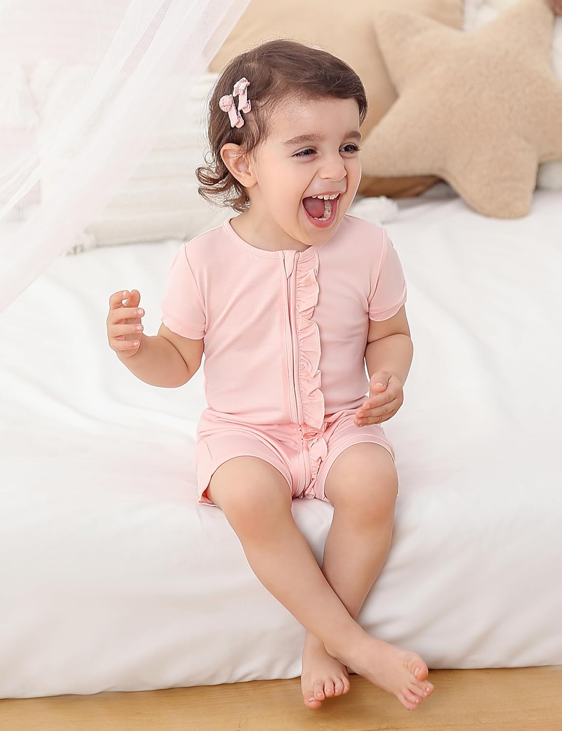 JunNeng Baby Boy Girl 2 Pack Rayon of Bamboo Summer Sleeper Infant Soft Short Sleeve Zipper Footless One-piece Romper