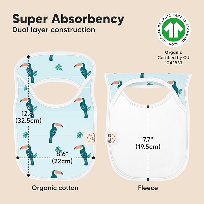 - For Heavy Droolers, Little Teethers - Made with Organic Cotton (GOTS-Certified by CU 1042833) and backed with water resistant fleece for added absorption, the Hallo Baby Bibs for Girls and Boys keep your baby's clothes fresh all day long.
