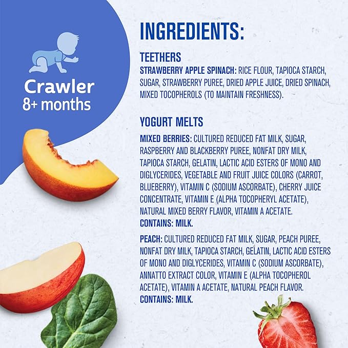 - Yogurt Melts Freeze-dried yogurt snack made with real fruit (2) Mixed Berries Naturally flavored with other natural flavors (2) Peach Naturally flavored with other natural flavors
