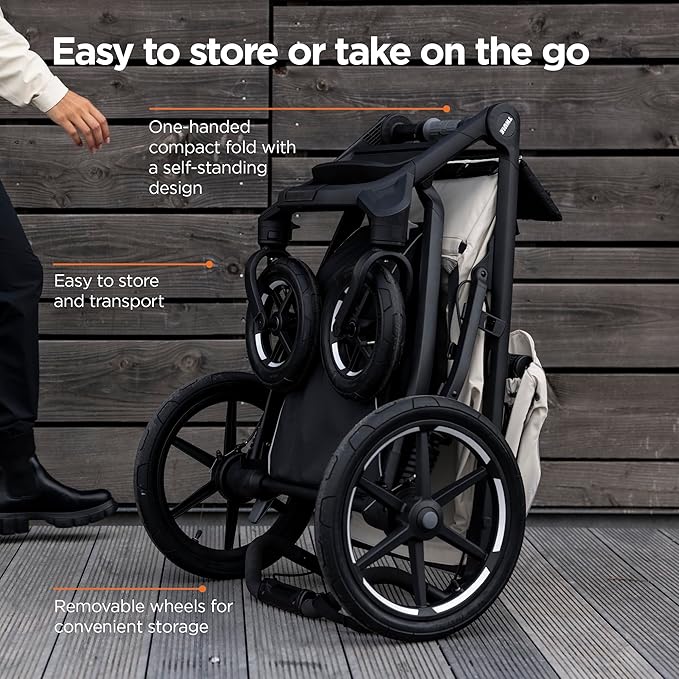 - Ultra-smooth ride: This Thule stroller features large 16-inch wheels with air filled tires, suspension and swivel front wheels that locks into place for jogging and running; baby stroller with hand brake for confident speed control