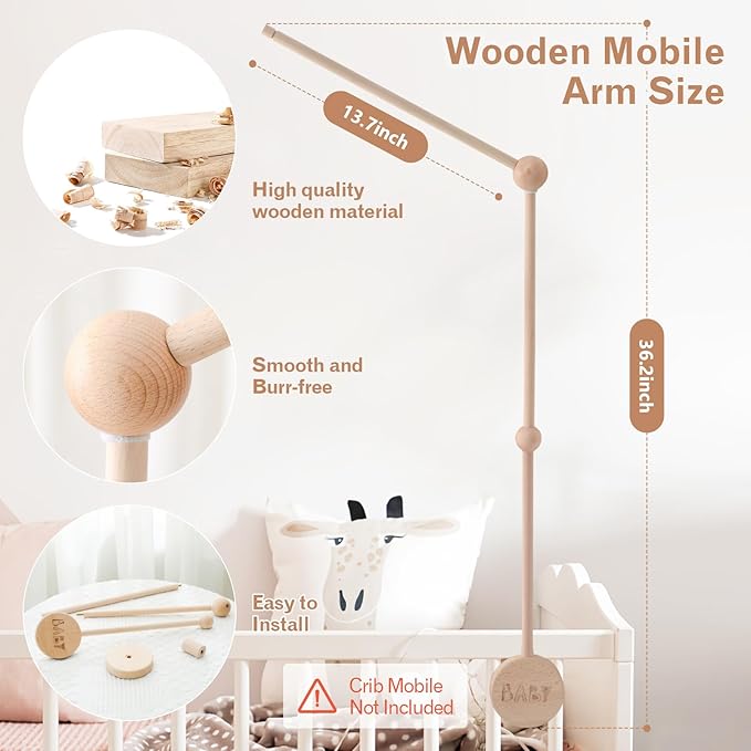 - đăPerfect Combination of Beauty and FunctionăOur crib mobile arm will complement your nursery design, the simple design and the enlarged design add a natural and cute atmosphere to any nursery!
