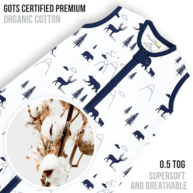 Mama Cheetah Baby Sleep Sack 0.5 TOG, Organic Cotton Baby Wearable Blanket with Two-Way Zipper, Swaddle Transition Baby Sleeping Bag for Newborn Infant Toddler Boy Girl, 0-3 Month