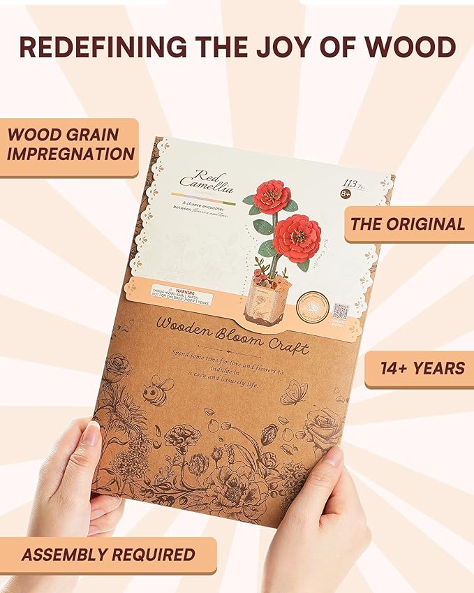 - 【Wooden Puzzle Red Camellia】Red camellia symbolizes natural beauty, modesty and purity, and represents ideal love. Send the Wowood 3d wooden puzzle red camellia to your favorite person to signify that love never falls