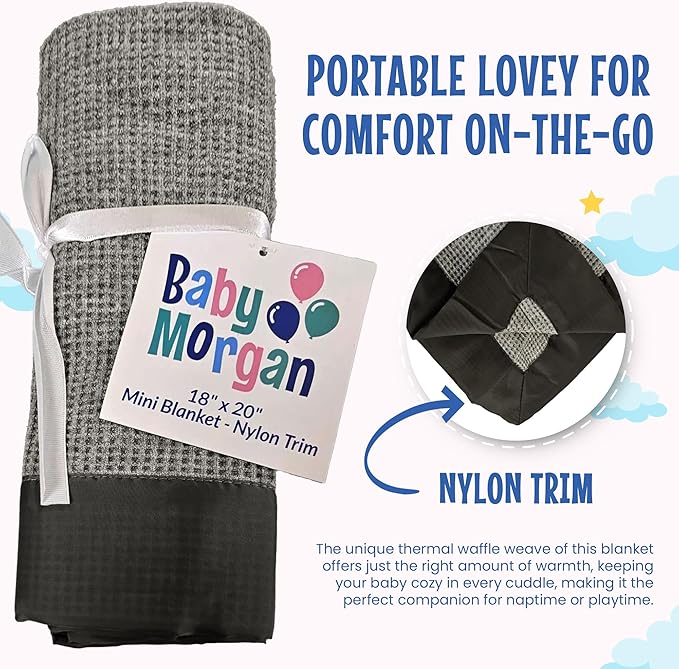 - MINI GRAY BABY BLANKET: The Baby Morgan mini baby blanket in Gray measures 18" x 20", ideal for newborns and infants. The soft waffle knit baby blanket offers both warmth and comfort, making it the perfect addition to your nursery décor. The gray hue creates a cozy atmosphere for your baby to enjoy.
