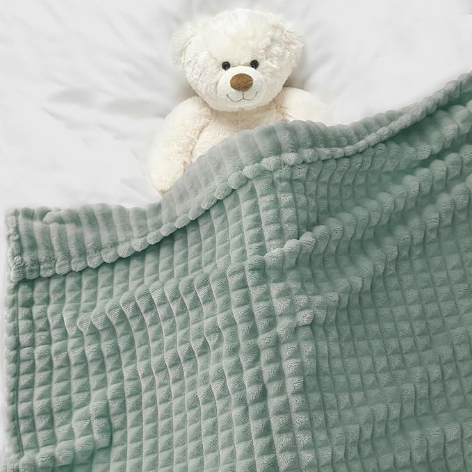 HOMRITAR 3D Flannel Fleece Baby Blanket for Unisex Sage Green Super Soft Plush Cozy Toddler Blanket with Square Grid Design Luxury Bed Blankets for Boys Girls 30 x 40 Inch