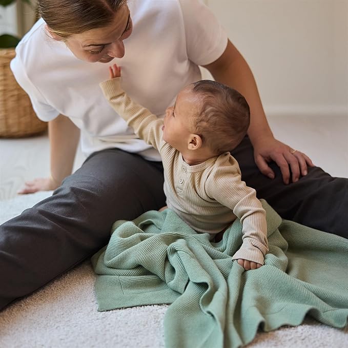 Knitted Organic Cotton Baby Blanket- Swaddle Blanket, 30" x 40" Soft Receiving Blanket for Newborn (Roman Green)