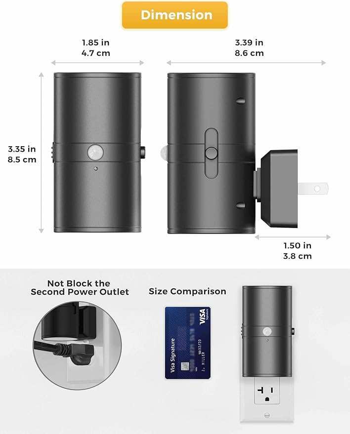 - 3 Lighting Modes: The plug in night light has a built-in motion sensor and 3 lighting modes. "On" mode - always on; "Off" mode - turns off the light; "Auto" mode - automatically turns on when motion is detected in the dark (Sensing Range: 3-5M, 120°) and turns off after 60 seconds of inactivity.